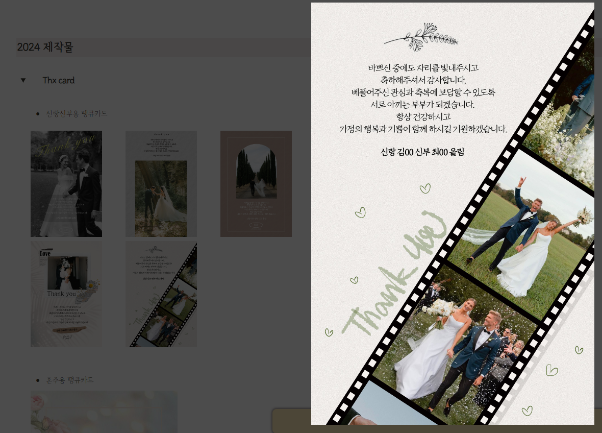 2. 땡큐카드 디자인, 신랑신부용/혼주용 각 1개